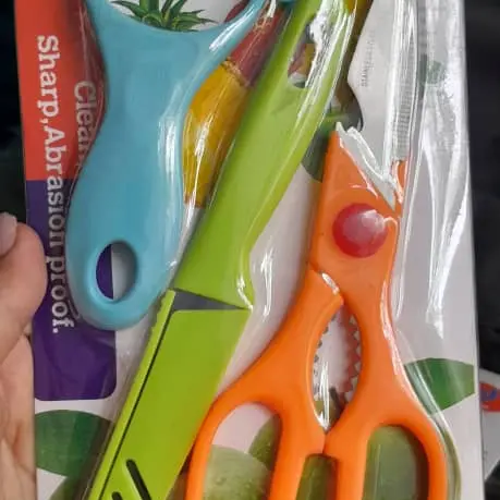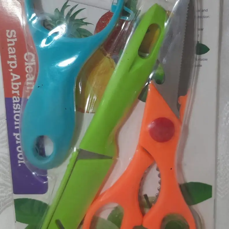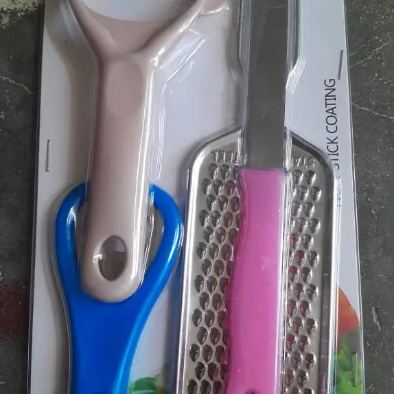 Juego de pela papa, cuchillo, tijera y abridor. 1300 cup